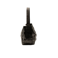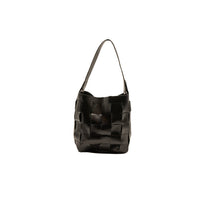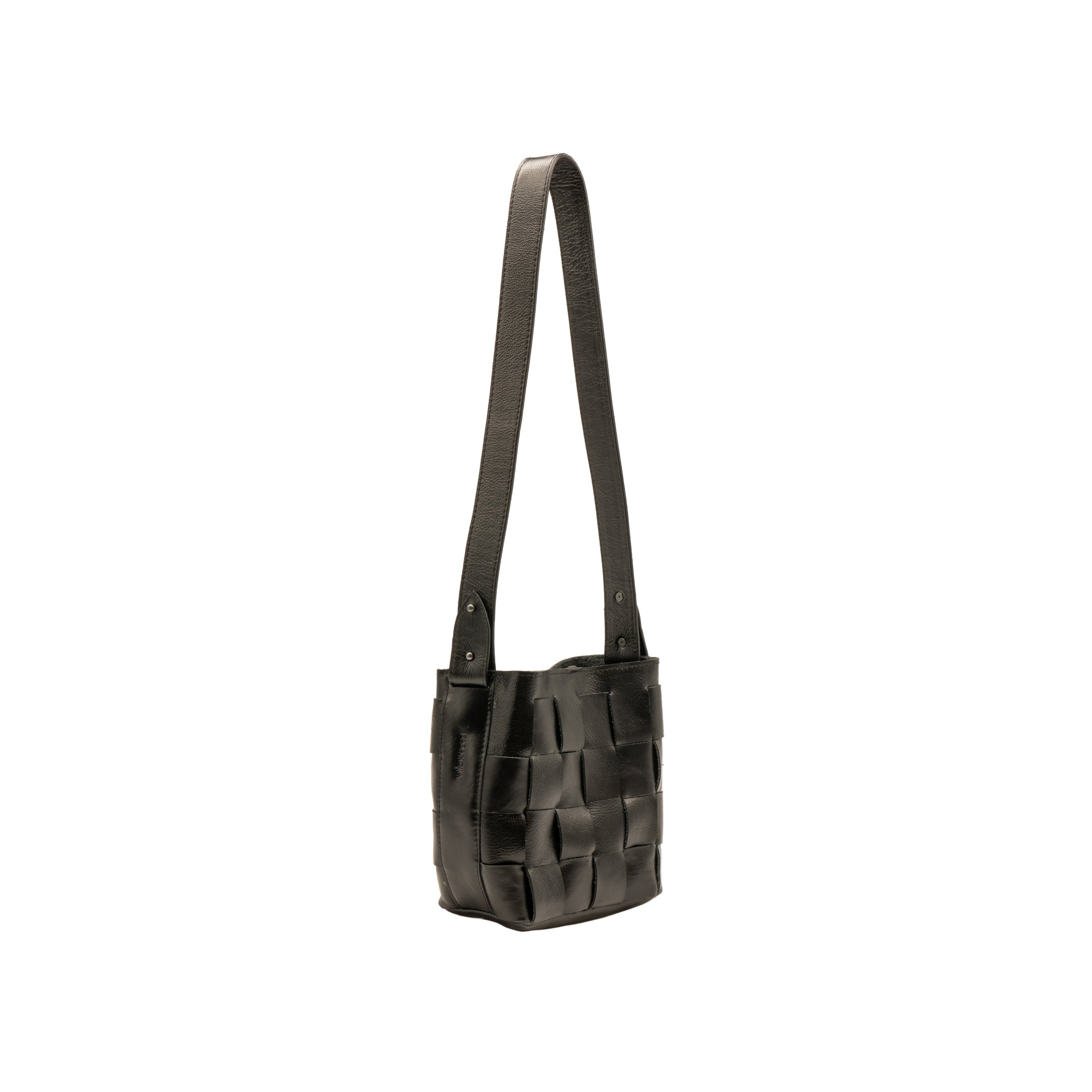 Woven handbag crafted in full-grain leather, combining structure with flexibility. The interlaced strips highlight the material’s natural texture and bring an artisanal character to the piece.
